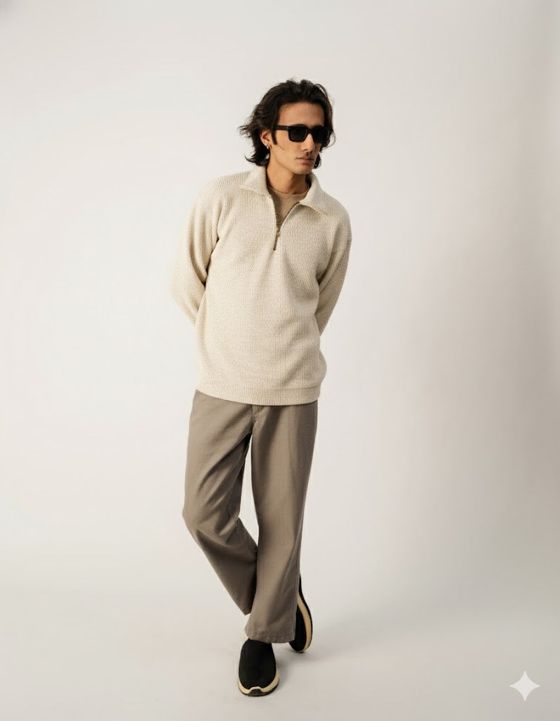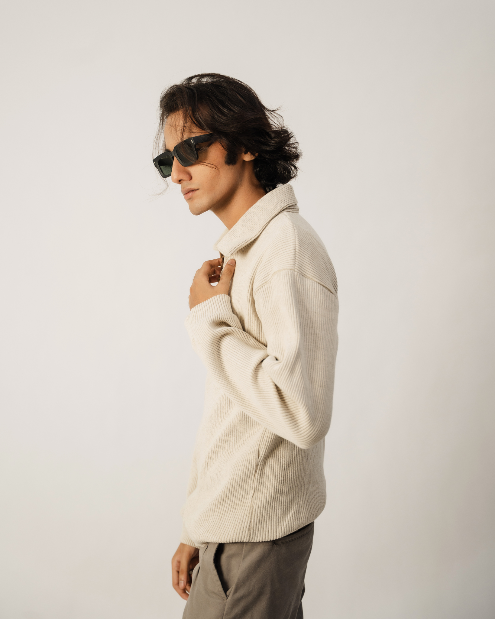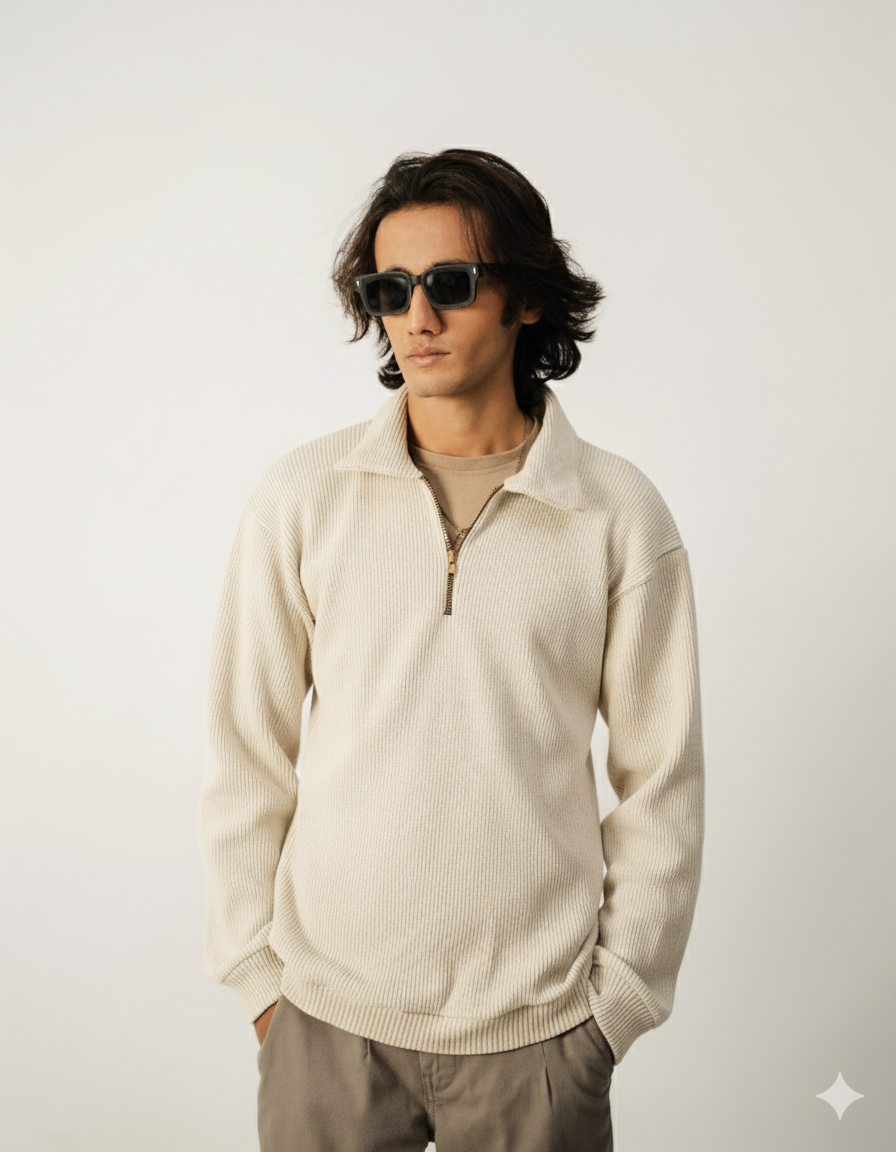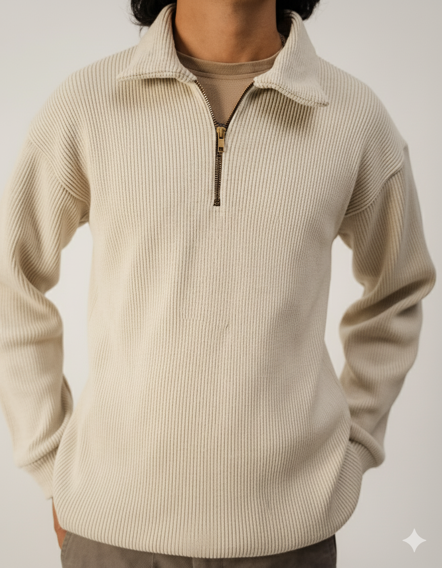 DESCRIPTION Elevate your essential rotation with the Heavyweight Ribbed knit-Zipper. Crafted from a substantial knit, this piece offers a premium weight that you can feel immediately. The dense rib construction provides a structured drape that doesn't lose its shape, while the classic zip collar allows for versatile styling. It’s not just a sweater; it’s the definition of modern luxury.